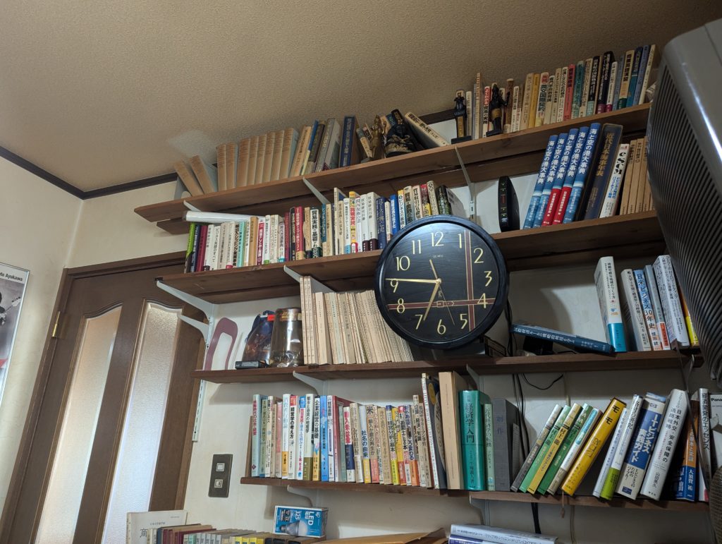 ちなみに本棚に掛かっている掛け時計は、マー坊の結婚式の引出物 何年前からあるんだろう💦